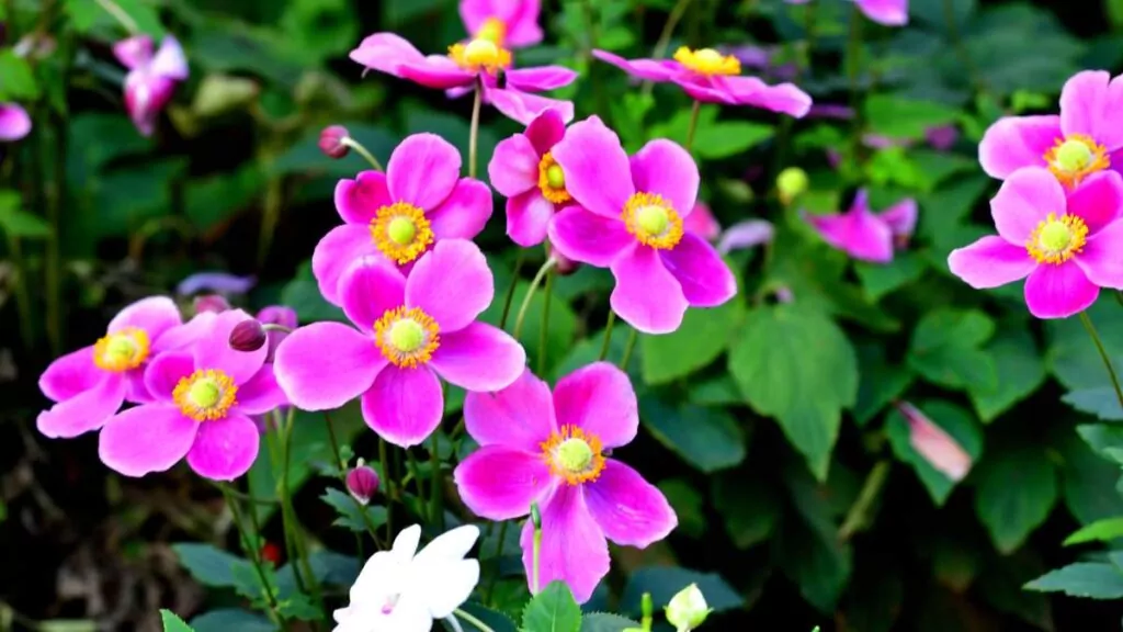 - Zawilce japońskie (Anemone hupehensis var. japonica): Delikatne kwiaty w różnych odcieniach różu i bieli. Kwitną od sierpnia do października.