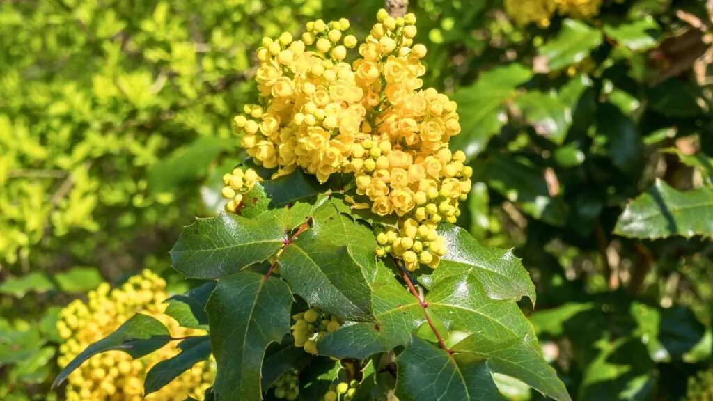 - Mahonia pospolita: To krzew o ozdobnych, ząbkowanych liściach, żółtych kwiatach i granatowych owocach. Dobrze znosi cień, co czyni ją idealną do twojego ogrodu..