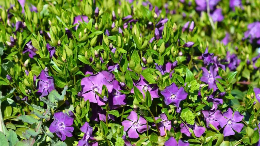 - Barwinek pospolity to roślina, która może zapewnić atrakcyjny wygląd w twoim ogrodzie przez cały rok. To niska roślina okrywowa o fioletowych kwiatach, która szybko tworzy gęste dywany.